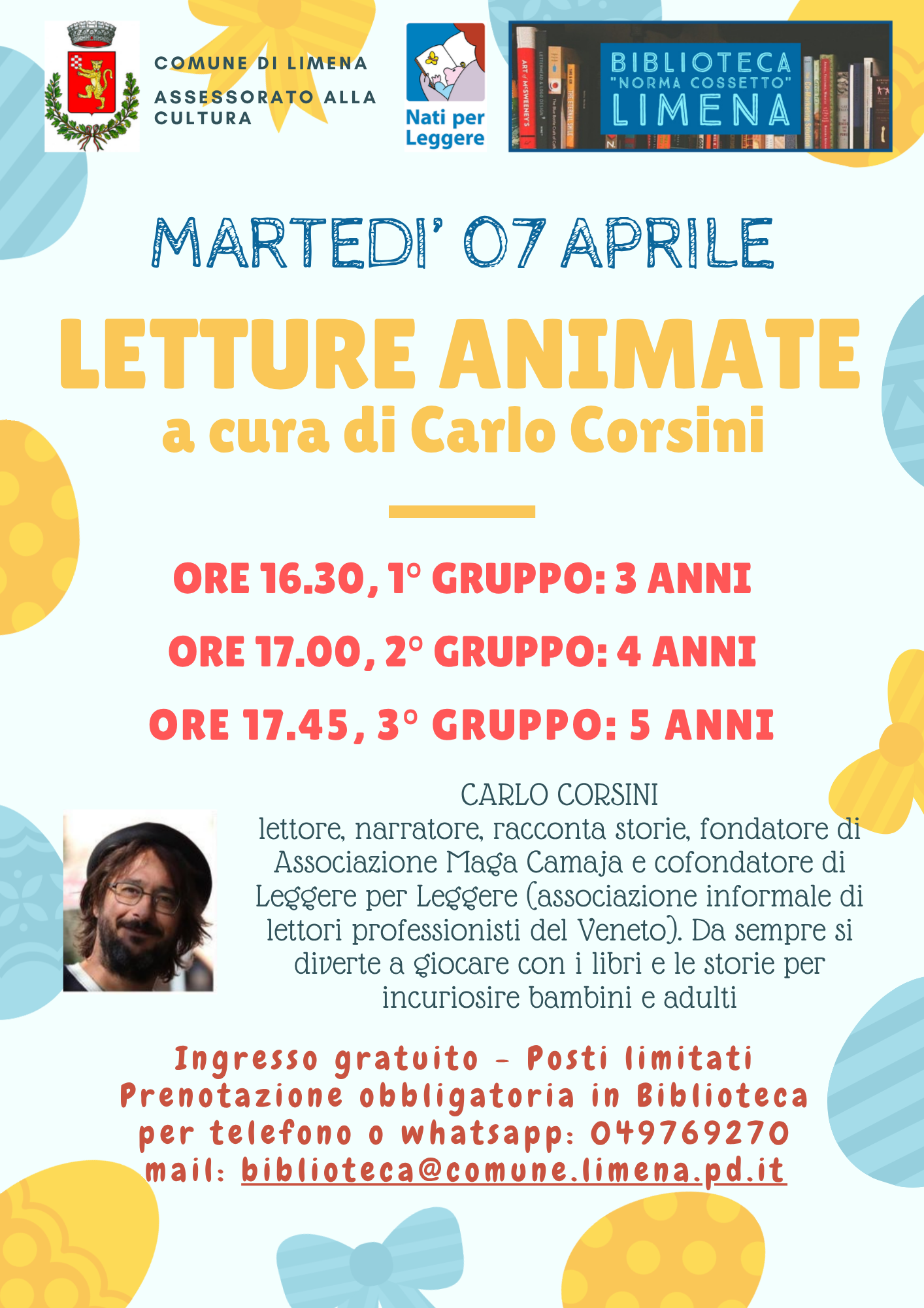 MARTEDI' 07 APRILE, IN BIBLIOTECA: LETTURE ANIMATE A CURA DI CARLO CORSINI PER BAMBINI DELLA SCUOLA DELL'INFANZIA